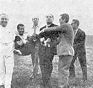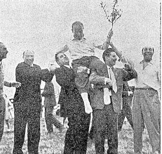 «As largadas, tiveram assim o ambiente e enquadramento necessários, com as costumadas peripécias graciosas do pontapé e do ramo de tojo, coroadas com o não menos gracioso, muito higiénico e monumental banho na Ribeira de Rio Maior, que a natureza ali pôs propositadamente para esse efeito.